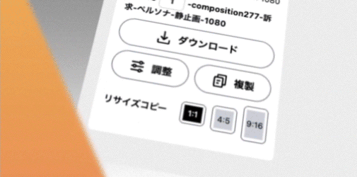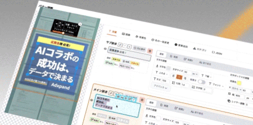 AIによる文言生成や、画像の置換・リサイズで大量生産し横展開可能。既存のAIが苦手な細かい調整も楽々可能!